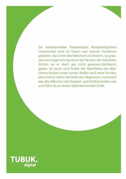 Ein märchenhaftes Theaterstück: Rumpelstilzchens Urururenkel wird im Traum von seinem Vorfahren gebeten, das Ende des Märchens zu ändern, so grausam und eigensinnig wie in der Version der Gebrüder Grimm sei er doch gar nicht gewesen.Geträumt, getan. So sucht und findet der Nachfahre des Märchenschurken einen armen Müller und seine Tochter, übernimmt selbst die Rolle des Regisseurs, inszeniert das alte Märchen mit Doppel- und Dreifachrollen neu und führt es zu einem überraschenden Ende.