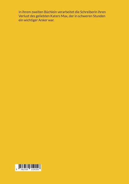 In ihrem zweiten Büchlein verarbeitet die Schreiberin ihren Verlust des geliebten Katers Max, der in schweren Stunden ein wichtiger Anker war.
