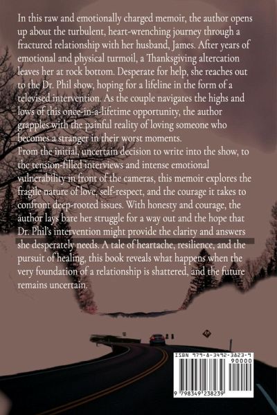 In this raw and emotionally charged memoir, the author opens up about the turbulent, heart-wrenching journey through a fractured relationship with her husband, Samej. After years of emotional and physical turmoil, a Thanksgiving altercation leaves her at rock bottom. Desperate for help, she reaches out to the Dr. Phil show, hoping for a lifeline in the form of a televised intervention. As the couple navigates the highs and lows of this once-in-a-lifetime opportunity, the author grapples with the painful reality of loving someone who becomes a stranger in their worst moments. From the initial, uncertain decision to write into the show, to the tension-filled interviews and intense emotional vulnerability in front of the cameras, this memoir explores the fragile nature of love, self-respect, and the courage it takes to confront deep-rooted issues. With honesty and courage, the author lays bare her struggle for a way out and the hope that Dr. Phil's intervention might provide the clarity and answers she desperately needs. A tale of heartache, resilience, and the pursuit of healing, this book reveals what happens when the very foundation of a relationship is shattered, and the future remains uncertain.