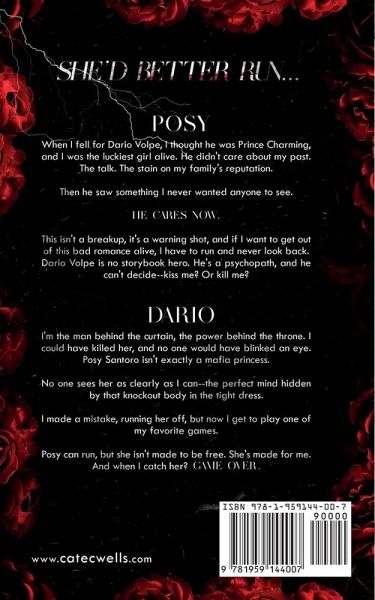 She'd better run... Posy When I fell for Dario Volpe, I thought he was Prince Charming, and I was the luckiest girl alive. He didn't care about my past. The talk. The stain on my family's reputation. Then he saw something I never wanted anyone to see. He cares now. This isn't a breakup, it's a warning shot, and if I want to get out of this bad romance alive, I have to run and never look back. Dario Volpe is no storybook hero. He's a psychopath, and he can't decide-kiss me? Or kill me? Dario I'm the man behind the curtain, the power behind the throne. I could have killed her, and no one would have blinked an eye. Posy Santoro isn't exactly a mafia princess. No one sees her as clearly as I can-the perfect mind hidden by that knockout body in the tight dress. I made a mistake, running her off, but now I get to play one of my favorite games. Posy can run, but she isn't made to be free. She's made for me. And when I catch her? Game over.