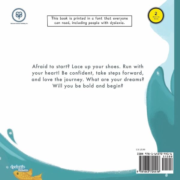 ***If this book is sold out or unavailable please visit MCP-STORE.COM*** This book is Dyslexic inclusive; it is printed in a font that everyone can read, including people with dyslexia.Afraid to start? Lace-up your shoes. Run with your heart! Be confident, take steps forward, and love the journey. What are your dreams? Will you be bold and begin? Level Learner Books # 2 Basic language, word repetition, and whimsical illustrations, ideal for sharing with your emergent reader. For more info about the font, go to www.Dyslexiefont.com Go to www.mcp-store.com to find out more about the typeface and discounts.