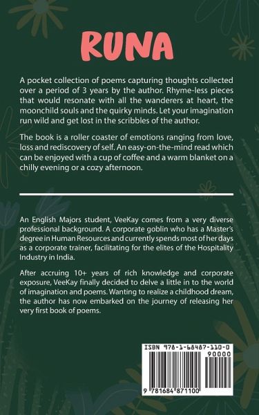 A pocket collection of poems capturing thoughts collected over a period of 3 years by the author. Rhyme-less pieces that would resonate with all the wanderers at heart, the moonchild souls and the quirky minds. Let your imagination run wild and get lost in the scribbles of the author. The book is a roller coaster of emotions ranging from love, loss and rediscovery of self. An easy-on-the-mind read which can be enjoyed with a cup of coffee and a warm blanket on a chilly evening or a cozy afternoon.