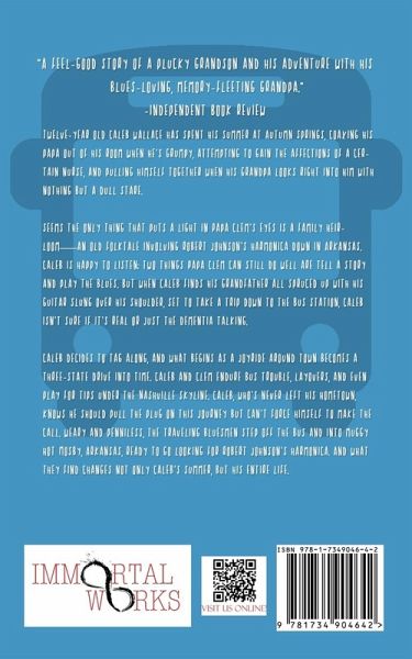 Twelve-year old Caleb Wallace has spent his summer at Autumn Springs, coaxing his papa out of his room when he's grumpy, attempting to gain the affections of a certain nurse, and pulling himself together when his grandpa looks right into him with nothing but a dull stare. Seems the only thing that puts a light in Papa Clem's eyes is a family heirloom-an old folktale involving Robert Johnson's harmonica down in Arkansas. Caleb is happy to listen; two things Papa Clem can still do well are tell a story and play the blues. But when Caleb finds his grandfather all spruced up with his guitar slung over his shoulder, set to take a trip down to the bus station, Caleb isn't sure if it's real or just the Dementia talking. Caleb decides to tag along, and what begins as a joyride around town becomes a three-state drive into time. Caleb and Clem endure bus trouble, layovers, and even play for tips under the Nashville skyline. Caleb, who's never left his hometown, knows he should pull the plug on this journey but can't force himself to make the call. Weary and penniless, the traveling bluesmen step off the bus and into muggy hot Mosby, Arkansas, ready to go looking for Robert Johnson's harmonica. And what they find changes not only Caleb's summer, but his entire life.