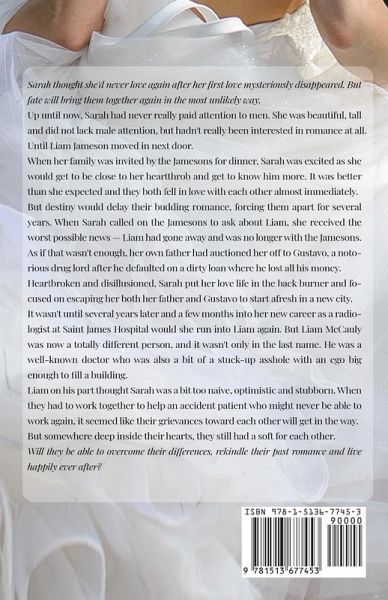Sarah thought she'd never love again after her first love mysteriously disappeared. But fate will bring them together again in the most unlikely way. Up until now, Sarah had never really paid attention to men. She was beautiful, tall and did not lack male attention, but hadn't really been interested in romance at all. Until Liam Jameson moved in next door. When her family was invited by the Jamesons for dinner, Sarah was excited as she would get to be close to her heartthrob and get to know him more. It was better than she expected and they both fell in love with each other almost immediately. But destiny would delay their budding romance, forcing them apart for several years. When Sarah called on the Jamesons to ask about Liam, she received the worst possible news - Liam had gone away and was no longer with the Jamesons. As if that wasn't enough, her own father had auctioned her off to Gustavo, a notorious drug lord after he defaulted on a dirty loan where he lost all his money. Heartbroken and disillusioned, Sarah put her love life in the back burner and focused on escaping her both her father and Gustavo to start afresh in a new city. It wasn't until several years later and a few months into her new career as a radiologist at Saint James Hospital would she run into Liam again. But Liam McCauly was now a totally different person, and it wasn't only in the last name. He was a well-known doctor who was also a bit of a stuck-up asshole with an ego big enough to fill a building. Liam on his part thought Sarah was a bit too naive, optimistic and stubborn. When they had to work together to help an accident patient who might never be able to work again, it seemed like their grievances toward each other will get in the way. But somewhere deep inside their hearts, they still had a soft for each other. Will they be able to overcome their differences, rekindle their past romance and live happily ever after?