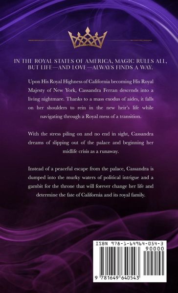 Upon His Royal Highness of California becoming His Royal Majesty of New York, Cassandra Ferran descends into a living nightmare. Thanks to a mass exodus of aides, it falls on her shoulders to rein in the new heir's life while navigating through a Royal mess of a transition. With the stress piling on and no end in sight, Cassandra dreams of slipping out of the palace and beginning her midlife crisis as a runaway. Instead of a peaceful escape from the palace, Cassandra is dumped into the murky waters of political intrigue and a gambit for the throne that will forever change her life and determine the fate of California and its royal family.