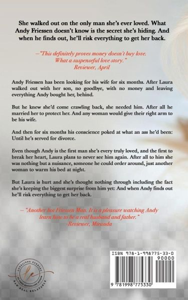She walked out on the only man she's ever loved. What Andy Friessen doesn't know is the secret she's hiding. And when he finds out, he'll risk everything to get her back. Andy Friessen has been looking for his wife for six months. After Laura walked out with her son, no goodbye, with no money and leaving everything Andy bought her, behind. But he knew she'd come crawling back, she needed him. After all he married her to protect her. And any woman would give their right arm to be his wife. And then for six months his conscience poked at what an ass he'd been: Until he's served for divorce. Even…mehr
