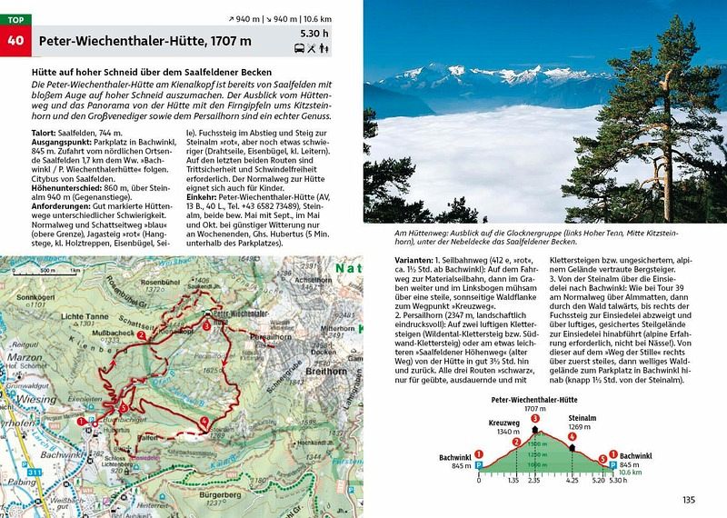 Jede Wanderung wird mit einer präzisen Wegbeschreibung, einem detaillierten Wanderkärtchen mit eingetragener Route und einem Höhenprofil vorgestellt. Eine übersichtliche Toureninfo liefert wertvolle Hinweise zu Anforderungen, Höhenunterschieden, Einkehrmöglichkeiten und Varianten. Geprüfte GPS-Tracks, die zum Download bereitstehen, machen die Orientierung im Gebiet des Hochkönigs ganz einfach.