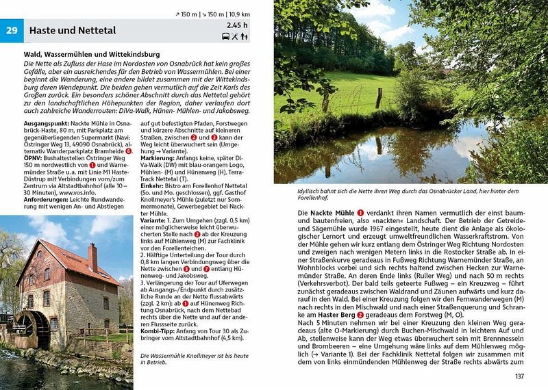 Berge, Flüsse, Seen und Moore machen die Landschaft rund um die Friedensstadt Osnabrück zu einem herrlichen Wander- und Ausflugsgebiet. Der Rother Wanderführer »Rund um Osnabrück« stellt 50 Touren vor, die alle zügig ab der Stadtmitte erreichbar sind. Vom kurzen Spaziergang über ausgedehnte Wanderung - für jeden ist hier das richtige dabei. Die Berge von Teutoburger Wald und Wiehengebirge sowie die Dammer Berge, die Ankumer Höhe, der Piesberg und die Höhenzüge von Hüggel und Gehn prägen das Osnabrücker Land. Ausläufer des Münsterlandes und viele Flüsse wie Hase, Dortmund-Ems und Mittellandkanal, sowie der Dümmer- und der Alfsee tragen zur Schönheit der Landschaft bei. Vorgestellt werden viele wunderbare Rundtouren - die bekannten »Teutoschleifen« und die »TERRA.tracks« gehören zu den bekannten Highlights, doch da gibt es noch viel mehr. Spannend sind auch die zahlreichen Fernwanderwege, die durch das Osnabrücker Land führen. Die schönsten Etappen werden in diesem Wanderführer alsTagestouren beschrieben. Höhepunkte sind unter anderem Hermannsweg, Hünenweg, Pickerweg oder auch der DIVA-Walk. Jede Wanderung wird mit einer zuverlässigen Wegbeschreibung, einem Tourenkärtchen und einem Streckenprofil vorgestellt. GPS-Tracks stehen zum Download bereit. Viele Varianten und Kombinationsmöglichkeiten lassen die Touren immer wieder neu erleben. Übrigens: Keine Tour ist weiter als 40 Kilometer von der Stadtmitte Osnabrücks entfernt. Außerdem sind so gut wie alle mit dem ÖPNV erreichbar - so steht auch einer spontanen Spritztour nichts im Weg!