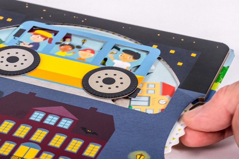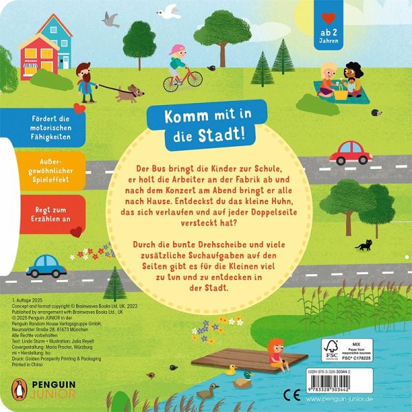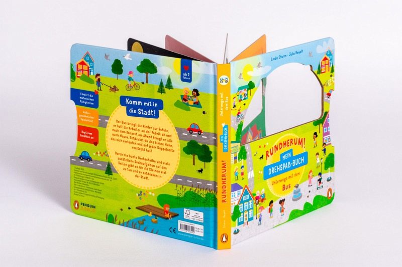 Ein wimmeliges Pappbilderbuch mit Stanzung und Drehscheibe ab 2 Jahren