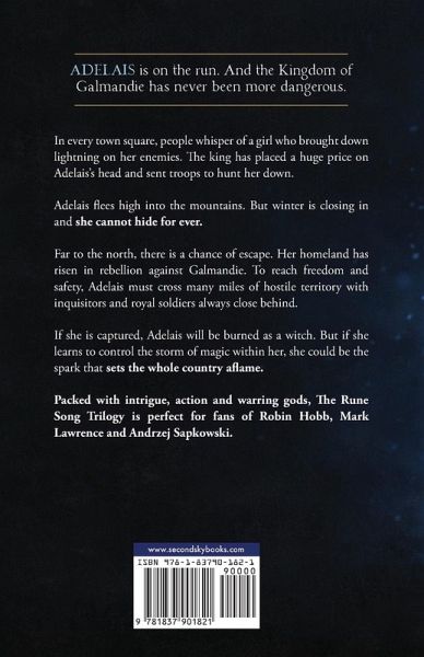 Adelais is on the run. With inquisitors and royal soldiers in pursuit, she flees high into the mountains. But winter is closing in and she cannot hide for ever. Far to the north, there is a chance of escape. Her homeland has risen in rebellion against Galmandie. If Adelais can evade capture and return, she will be free. But Galmandie has never been more dangerous. In every town square, people whisper of a girl who brought down lightning on her enemies. Rumors of curses and corruption have shattered the king's authority. As the court rides out for a great hunt, ruthless nobles watch for signs of weakness. Adelais has a storm of power inside her. If she is caught, she will burn as a witch. But if she learns to control her rune magic, she could be the spark that sets the whole country aflame. See why readers love the Rune Song Trilogy: "Amazing, brilliant book!... I flew through the last 50% of this book and could think about nothing else. The only problem is having to wait for the next one." @readwith_soph ¿¿¿¿¿ "Knights! Rune magic! Evil priests! Amazing FMC! Perfect ingredients for a fantastic fantasy ¿¿ Can't wait to read the rest of The Rune Song saga!" Goodreads reviewer "Strong and gripping... I shall certainly await future publications from this author with the same anticipation I give novels by Joe Abercrombie or Sebastien de Castell." Bob's Book Reviews ¿¿¿¿¿ "One of the many things I loved about this book is the way Gudgion writes about battles... There is a fluid grace to the writing that makes you see and feel the impact." Goodreads reviewer ¿¿¿¿¿ "It had everything that I was looking for... Viking magic and Templar knights... Left me wanting to read more in this universe." Catraphoenix ¿¿¿¿¿ "Everything I want from a fantasy story... Great characters, very descriptive battle scenes... I can't wait to read more." NetGalley reviewer ¿¿¿¿¿