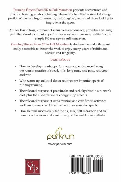 Running Fitness presents a structured and practical training guide aimed at a large portion of the running community, including beginners and those looking to improve in the sport. Author David Ross, a runner of many years experience, provides a training path that develops running capability from a simple 5K race up to full marathon, whilst making the sport easily accessible to those who wish to enjoy many years of fulfilment, success and longevity. Learn about warm-up and cool-down drills, speed and hill training, long runs, race pace, recovery and rest, plus cross training, core fitness, diet and energy supplements.