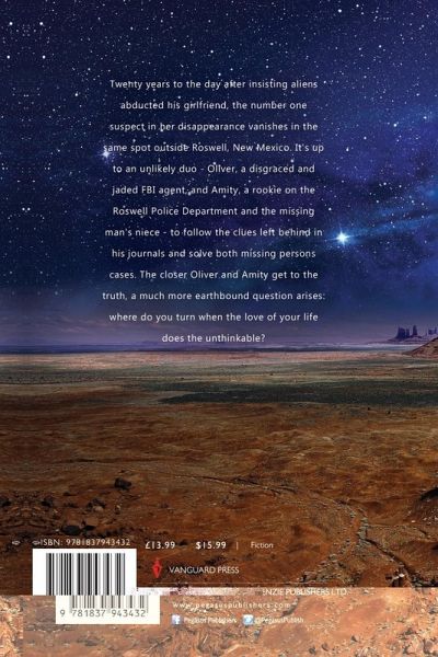 Twenty years to the day after insisting aliens abducted his girlfriend, the number one suspect in her disappearance vanishes in the same spot outside Roswell, New Mexico. It's up to an unlikely duo - Oliver, a disgraced and jaded FBI agent, and Amity, a rookie on the Roswell Police Department and the missing man's niece - to follow the clues left behind in his journals and solve both missing persons cases. The closer Oliver and Amity get to the truth, a much more earthbound question arises: where do you turn when the love of your life does the unthinkable?