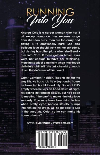 Andrea Cole is a career woman who has it all except romance. Her excuses range from she's too busy, men are too crazy and dating is to emotionally hard! She also believes love should work on her schedule, but destiny has other plans when she literally runs into Cam. If those golden brown eyes were not enough to have her rethinking, then the spark of electricity when they touch definitely did! Will she let chemistry knock down the defenses of her heart? Cam "Camden" Holden, likes his life just the way it is. He has a job he enjoys and a house he loves in his childhood city. So what if it's empty when he lays his head down at night. His dating life remains casual, but he's open to meeting "the one" to make him take love seriously. Fate may have been kind to him when pretty eyed Andrea literally bumps into him on the street. Will he be able to lure in the wary Ms. Cole…so he can make his house a home?