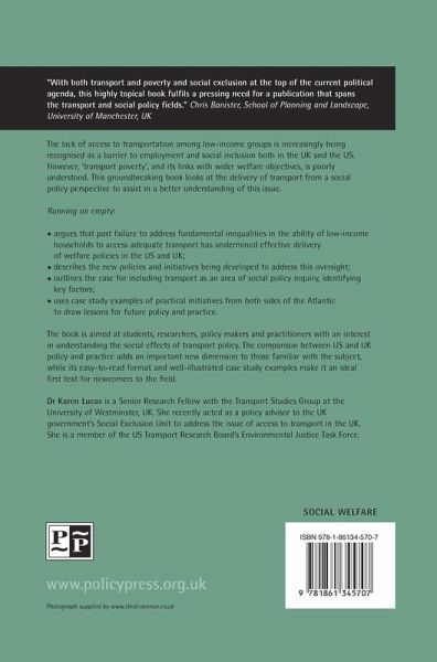 Lack of access to transportation among low-income groups is increasingly being recognised as a barrier to social inclusion. However, 'transport poverty', and its links with wider welfare objectives, is poorly understood. This book looks at the delivery of transport from a social policy perspective to assist in a better understanding of this issue.