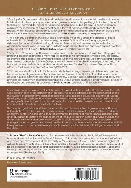Part 1. Government Roles and Organizations 1. Public Administration and Governance in a Competitive World [with Hazel McFerson] 2. Policy-Making Machinery and the Structure of Central Government 3. Decentralization and the Organizational Architecture of Subnational Government Part 2. Managing Government 4. Managing Government Finances 5. Government Employment and Wage Policy 6. Managing Government Personnel 7. Managing Public Procurement 8. Government Regulation Part 3. Government Interaction with Society 9. Accountability: Protecting Resources, Encouraging Performance 10. The Rule of Law and Public Corruption [with Jianna Schiavo-Campo] 11. Transparency, Information and Communication Technology, and the Media [with Clay Wescott] 12. Participation and Interaction with Civil Society 13. Providing Public Services and Interacting with Private Business 14. Public Administration Reform: Lessons of Experience and Broad Directions
