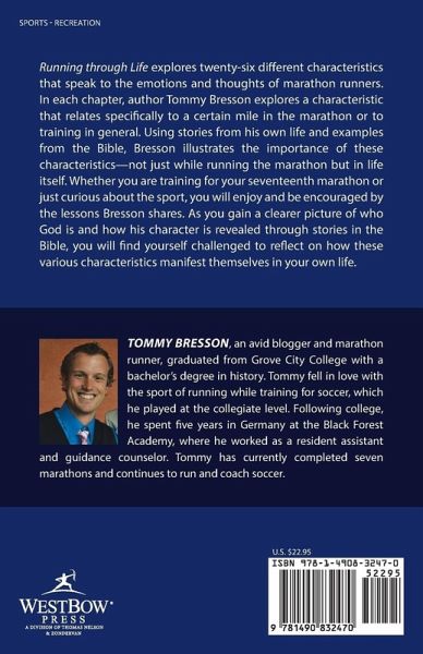 Running through Life explores twenty-six different characteristics that speak to the emotions and thoughts of marathon runners. In each chapter, author Tommy Bresson explores a characteristic that relates specifically to a certain mile in the marathon or to training in general. Using stories from his own life and examples from the Bible, Bresson illustrates the importance of these characteristics--not just while running the marathon but in life itself. Whether you are training for your seventeenth marathon or just curious about the sport, you will enjoy and be encouraged by the lessons Bresson shares. As you gain a clearer picture of who God is and how his character is revealed through stories in the Bible, you will find yourself challenged to reflect on how these various characteristics manifest themselves in your own life.