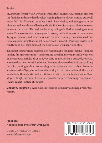 In Running, former NCAA Division I track athlete Lindsey A. Freeman presents the feminist and queer handbook of running that she always wanted but could never find. For Freeman, running is full of joy, desire, and indulgence in the pleasure and weirdness of having a body. It allows for a space of freedom-to move and be moved. Through tender storytelling of a lifetime wearing running shoes, Freeman considers injury and recovery, what it means to run as a visibly queer person, and how the release found in running comes from a desire to touch something that cannot be accessed when still. Running invites us to run through life, legging it out the best we can with heart and style.