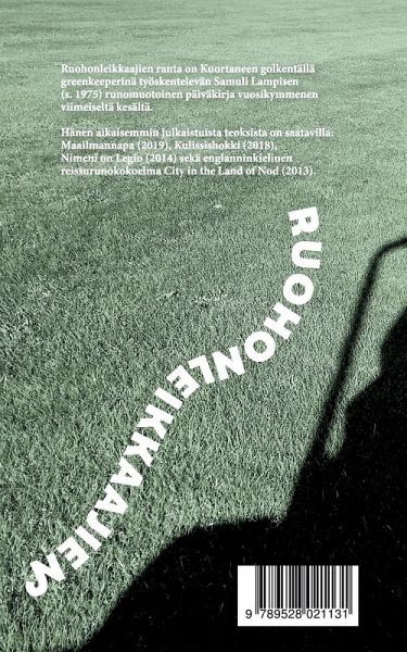 Ruohonleikkaajien ranta on Kuortaneen golfkentällä greenkeeperinä työskentelevän Samuli Lampisen runomuotoinen päiväkirja vuosikymmenen viimeiseltä kesältä. - Siirrän hyvää nurmea huonosti talvehtineisiin kriittisiin kohtiin. Toukokuu paistaa takinkauluksesta sisään. Kaksi joutsenta ovatkin lokkeja aurinkolasien naarmussa. Mitä muka on ruohonleikkuu istuttamiseen verrattuna? Upotan moran kentän vihreään turkkiin. Kannan maata käsissäni. - Hänen aikaisemmin julkaistuista teoksista on saatavilla: Maailmannapa (2019), Kulissishokki (2018), Nimeni on Legio (2014) sekä englanninkielinen City in the Land of Nod (2013).