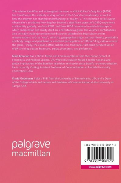 Chapter 1. Drag Culture, Global Participation and RuPaul's Drag Race.- Chapter 2. The 'RuPaulitics' of Subjectification in RuPaul's Drag Race.- Chapter 3. Contradictions between the Subversive and the Mainstream: Drag Cultures and RuPaul's Drag Race.- Chapter 4. "Go pick up a book and read": Art and Legitimacy in RuPaul's Drag Race.- Chapter 5. North American Universalism in RuPaul's Drag Race: Stereotypes, Linguicism, and the Construction of 'Puerto Rican Queens'.- Chapter 6. Spicy. Exotic. Creature. Representations of Racial and Ethnic Minorities on RuPaul's Drag Race.- Chapter 7. The Werk that Remains: Drag and the Mining of the Idealized Female Form.- Chapter 8. Big-Girls Don't Cry: Portrayls of the Fat Body in RuPaul's Drag Race.- Chapter 9. "I Am The Drag Whisperer." Notes from the Front Line of a Cultural Phenomenon.- Chapter 10. Sissy That Performance Script! The Queer Pedagogy of RuPaul's Drag Race.- Chapter 11. Super Troopers: The Homonormative Regime of Visibility in RuPaul's Drag Race.- Chapter 12. "Please, Come to Brazil!" The Practices of Brazilian RuPaul's Drag Race Brazilian Fandom.- Chapter 13. Reception of Queer Content and Stereotypes among Young People in Monterrey, Mexico.- Chapter 14. Mainstreaming the Transgressive: Greek Audiences' Readings of Drag Culture through the Consumption of RuPaul's Drag Race.- Chapter 15. RuPaul's Drag Race and the Reconceptualization of Queer Communities and Publics.- Chapter 16. Digital Extensions, Experiential Extensions and Hair Extensions: RuPaul's Drag Race and the New Media Environment.- Chapter 17. What Can Drag Do for Me? The Multifaceted Influences of RuPaul's Drag Race on the Perth Drag Scene.- Chapter 18. "If You Can't Love Yourself, How in the Hell You Gonna Love Somebody Else?" Drag TV and Self-love Discourse.- Chapter 19. "We're All Born Naked and the Rest Is Drag": The Performativity of Bodies Constructed inDigital Networks.