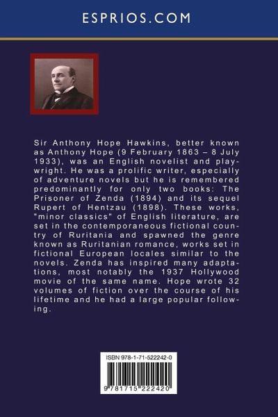 Sir Anthony Hope Hawkins, better known as Anthony Hope (9 February 1863 - 8 July 1933), was an English novelist and playwright. He was a prolific writer, especially of adventure novels but he is remembered predominantly for only two books: The Prisoner of Zenda (1894) and its sequel Rupert of Hentzau (1898). These works, "minor classics" of English literature, are set in the contemporaneous fictional country of Ruritania and spawned the genre known as Ruritanian romance, works set in fictional European locales similar to the novels. Zenda has inspired many adaptations, most notably the 1937…mehr