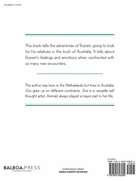 This book tells the adventures of Rupert, going to look for his relatives in the bush of Australia. It tells about Rupert's feelings and emotions when confronted with so many new encounters.