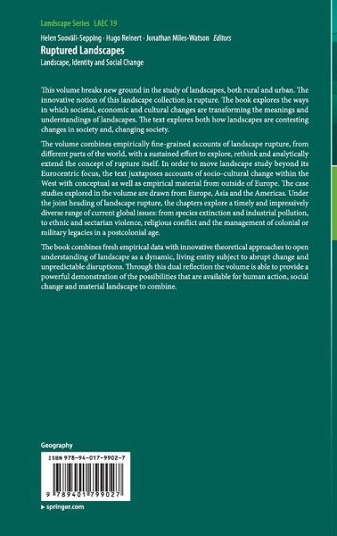 This volume breaks new ground in the study of landscapes, both rural and urban. The innovative notion of this landscape collection is rupture . The book explores the ways in which societal, economic and cultural changes are transforming the meanings and understandings of landscapes. The text explores both how landscapes are contesting changes in society and changing society. The volume combines empirically fine-grained accounts of landscape rupture, from different parts of the world, with a sustained effort to explore, rethink and analytically extend the concept of rupture itself. The book therefore combines fresh empirical data with innovative theoretical approaches to open understanding of landscape as a dynamic, living entity subject to abrupt change and unpredictable disruptions. Through this dual reflection the volume is able to provide a powerful demonstration of the possibilities that are available for human action, social change and material landscape to combine.
