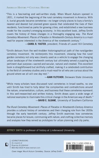 When Mount Auburn opened as the first "rural" cemetery in the United States in 1831, it represented a new way for Americans to think about burial sites. It broke with conventional notions about graveyards as places to bury and commemorate the dead. Rather, the founders of Mount Auburn and the spate of similar cemeteries that followed over the next three decades before the Civil War created institutions that they envisioned being used by the living in new ways. Cemeteries became places for leisure, communing with nature, and creating a version of collective memory. In fact, these cemeteries reflected changing values and attitudes of Americans spanning much of the nineteenth century. In the process, they became paradoxical: they were "rural" yet urban, natural yet designed, artistic yet industrial, commemorating the dead yet used by the living. The Rural Cemetery Movement: Places of Paradox in Nineteenth-Century America breaks new ground in the history of cemeteries in the nineteenth century. This book examines these "rural" cemeteries modeled after Mount Auburn that were founded between the 1830s and 1850s. As such, it provides a new way of thinking about these spaces and new paradigm for seeing and visiting them. While they fulfilled the sacred function of burial, they were first and foremost businesses. The landscape and design, regulation of gravestones, appearance, and rhetoric furthered their role as a business that provided necessary services in cities that went well beyond merely burying bodies. They provided urban green spaces and respites from urban life, established institutions where people could craft their roles in collective memory, and served as prototypes for both urban planning and city parks. These cemeteries grew and thrived in the second half of the nineteenth century; for most, the majority of their burials came before 1910. This expansion of cemeteries coincided with profound urban growth in the United States. Unlike their predecessors, founders of these burial grounds intended them to be used in many ways that reflected their views and values about nature, life and death, and relationships. Emphasis on worldly accomplishments increased with industrialization and growth in the United States, which was reflected in changing ways people commemorated their dead during the period under this study. Thus, these cemeteries are a prism through which to understand the values, attitudes, and culture of urban America from mid-century through the Progressive Era.