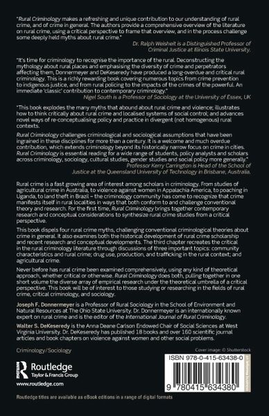 Rural crime is a fast growing area of interest among scholars in criminology. From studies of agricultural crime in Australia, to violence against women in Appalachia America, to poaching in Uganda, to land theft in Brazil -- the criminology community has come to recognize that crime manifests itself in rural localities in ways that both conform to and challenge conventional theory and research. For the first time, Rural Criminology brings together contemporary research and conceptual considerations to synthesize rural crime studies from a critical perspective. This book dispels four rural crime myths, challenging conventional criminological theories about crime in general. It also examines both the historical development of rural crime scholarship, recent research and conceptual developments. The third chapter recreates the critical in the rural criminology literature through discussions of three important topics: community characteristics and rural crime, drug use, production and trafficking in the rural context, and agricultural crime. Never before has rural crime been examined comprehensively, using any kind of theoretical approach, whether critical or otherwise. Rural Criminology does both, pulling together in one short volume the diverse array of empirical research under the theoretical umbrella of a critical perspective. This book will be of interest to those studying or researching in the fields of rural crime, critical criminology and sociology.