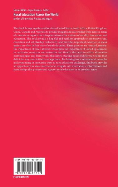 This book brings together authors from United States, South Africa, United Kingdom, China, Canada and Australia to provide insights and case studies from across a range of contexts to explore the interplay between the notions of rurality, innovation and education. The book reveals a hopeful and resilient approach to innovative rural education and scholarship collectively and provides important evidence to speak against an often deficit view of rural education. Three patterns are revealed, namely: the importance of place-attentive strategies, the importance of joined up alliances to maximise resources and networks and finally, the need to utilize alternative methodologies and frameworks that have a starting point of difference rather than deficit for any rural initiative or approach. By drawing from international examples and responding in innovative ways to rural education challenges, this book provides an opportunity to share international insights into innovations, interventionsand partnerships that promote and support rural education in its broadest sense.