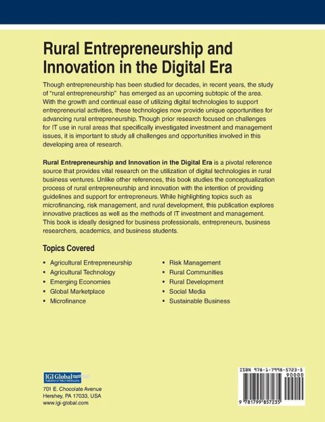 "This book explores the impact, trends, opportunities, and challenges of rural entrepreneurship and innovation in the digital era"--