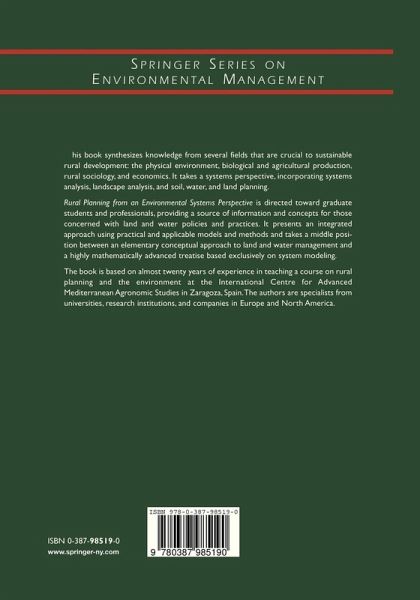 This book synthesizes knowledge from several fields that are crucial to sustainable rural development: the physical environment, biological and agricultural production, rural sociology and economics. It takes a systems perspective incorporating systems analysis, landscape analysis and soil, water, and land planning. Rural Planning from an Environmental Systems Perspective is directed toward graduate students and professionals, providing a source of information and concepts for those concerned with land and water policies and practice. It presents an integrated approach using practical and applicable models and methods and takes a middle position between an elementary conceptual approach to land and water management and a highly mathematically advanced treatise based exclusively on system modeling. The book is based on almost twenty years of experience in teaching a course on rural planning and the environment at the International Centre for Advanced Mediterranean Agronomic Studies in Zaragoza, Spain. The authors are specialists from universities, research institutions and companies in Europe and North America.