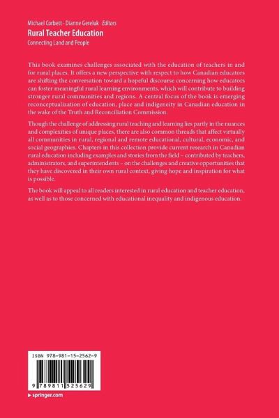 Part 1 Why Rural Matters in Education.- 1 Introduction.- Part 2 The Rural Education Landscape in Canada.- 2 Setting the Stage: Overview of Data on Teachers and Students in Rural and Urban Canada.- 3 "You can't get there from here": Mapping Access to Canada's Teacher Education programs.- 4 On the Educational Ethics of Outmigration: Liberal Legitimacy, Personal Autonomy, and Rural Education.- 5 Reconsidering Rural Education in Light of Canada's Indigenous Reality.- Part 3 Rural Identity and Relationality.- 6 "Growing Our Own Teachers": Rural Individuals Becoming Certified Teachers.- 7 "Where Love Prevails": Student Resilience and Resistance in Precarious Spaces.- 8 Rural Schools as Sites for Ongoing Teacher Education: Co-making Relational Inquiry Spaces between a Principal and a Beginning Teacher.- 9 Becoming a Teacher in a Rural or Remote Community: The Experiences of Educational Assistants.- 10 Rural Secondary School Parents' Discourses about Feeling in Community in their Children's Schools: Insights to Shape Teachers' and Principals' Questions.- Part 4 Place-based and Land-based Pedagogies.- 11 Land and Critical Place-based Education in Canadian Teacher Preparation: Complementary Pedagogies for Complex Futures.- 12 Onikaniwak: Land-based Learning as ReconcilACTION.- 13 Developing a STEAM Curriculum of Place for Teacher Candidates: Integrating Environmental Field Studies and Indigenous Knowledge Systems.- 14 Place-based Education: A Critical Appraisal from a Rural Perspective.- Part 5 Conclusion.- 15 Insights and Provocations for the Future of Rural Education: Reclaiming the Conversation for Rural Education. 16 Afterword.