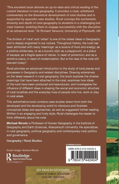 The division of 'rural' and 'urban' is one of the oldest ideas in Geography and is deeply engrained in our culture. Throughout history, the rural has been attributed with many meanings: as a source of food and energy; as a pristine wilderness, or as a bucolic idyll; as a playground, or a place of escape; as a fragile space of nature, in need of protection; and as a primitive place, in need of modernization. But is the idea of the rural still relevant today? Rural provides an advanced introduction to the study of rural places and processes in Geography and related disciplines. Drawing extensively on the latest research in rural geography, this book explores the diverse meanings that have been attached to the rural, examines how ideas of the rural have been produced and reproduced, and investigates the influence of different ideas in shaping the social and economic structure of rural localities and the everyday lives of people who live, work or play in rural areas. This authoritative book contains case studies drawn from both the developed and developing world to introduce and illustrate conceptual ideas and approaches, as well as suggested further reading. Written in an engaging and lively style, Rural challenges the reader to think differently about the rural.
