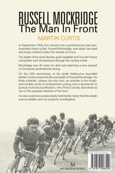 In September 1958, only minutes into a professional road race, Australia's best cyclist, Russell Mockridge, was dead, his head and body crushed under the wheels of a bus. The death of the Olympic Gold medallist and Tour de France competitor was an embarrassment for cycling officials. Mockridge was 30 when he was killed and planning a new assault on European professional racing. On the 50th anniversary of his death Melbourne journalist Martin Curtis revisits the life and death of Russell Mockridge. He finds a literate, urbane, but shy man, an outsider in the rough-and-tumble world of professional cycling. He also investigates passionately held family views that the death was not properly investigated. This is a compelling account of a legendary Australian sportsman and one that will be of real interest to the growing number of cycling enthusiasts as well as a broad general readership.