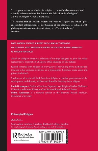 Introduction PART I Personal statements 1 From 'My Mental Development' and 'Reply to Criticisms' 2 The Free Man's Worship 3 Autobiography: Mystic Illumination 4 What is an Agnostic? PART II Religion and philosophy 5 The Essence of Religion 6 The Essence and Effect of Religion 7 Why I Am Not a Christian 8 The Existence and Nature of God PART III Religion and science 9 Mysticism and Logic 10 Science and Religion 11 Review of Sir Arthur Eddington, The Nature of the Physical World 12 Review of James Jeans, The Mysterious Universe 13 Do Science and Religion Conflict? PART IV Religion and morality 14 Religion and the Churches 15 Inherent Tendencies of Industrialism 16 Has Religion Made Useful Contributions to Civilization? 1 7 The Sense of Sin PART V Religion and history 18 Introduction to History of Western Philosophy 19 The Religious Development of the Jews 20 Christianity During the First Four Centuries 21 Mohammedan Culture and Philosophy 22 The Reformation and Counter-Reformation