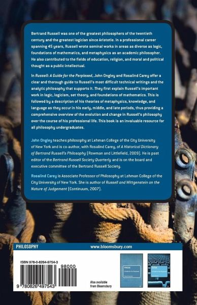 Winner of the 2014 Bertrand Russell Society Book Award Bertrand Russell was one of the greatest philosophers of the twentieth century. Over his professional career of 45 years Russell left his mark and influence in many domains of intellectual inquiry. This includes the foundations of mathematics, the philosophy of science, metaphysics, the theory of knowledge, the philosophy of language, education, religion, history, ethics and politics. In Russell: A Guide for the Perplexed, John Ongley and Rosalind Carey offer a clear and thorough account of the work and thought of this key thinker, providing a thematic outline of his central ideas and his enduring influence throughout the field of philosophy. The authors lay out a detailed survey of Russell's academic, technical philosophy, exploring his work on logic, mathematics, metaphysics, language, knowledge and science. This concise and accessible book engages the reader in a deeper critical analysis of Russell's prolific philosophical and literary output.