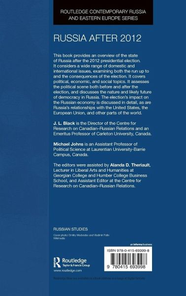 This book provides an overview of the state of Russia after the 2012 presidential election. It considers a wide range of both domestic and international issues, examining both the run up to and the consequences of the election. It covers political, economic, and social topics. It assesses the political scene both before and after the election, and discusses the nature of and likely future of democracy in Russia. The election's impact on the Russian economy is discussed in detail, as are Russia's relationships with the United States, the European Union, and other parts of the world.