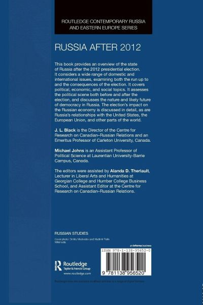 This book provides an overview of the state of Russia after the 2012 presidential election. It considers a wide range of both domestic and international issues, examining both the run up to and the consequences of the election. It covers political, economic, and social topics. It assesses the political scene both before and after the election, and discusses the nature of and likely future of democracy in Russia. The election's impact on the Russian economy is discussed in detail, as are Russia's relationships with the United States, the European Union, and other parts of the world.