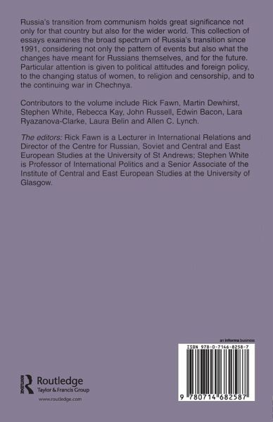 Russia's transition from communism holds great significance not only for itself but also for the wider world. This collection of essays examines the spectrum of Russia's transition since 1991 - considering not only the pattern of events but also what the changes have meant for Russians themselves.