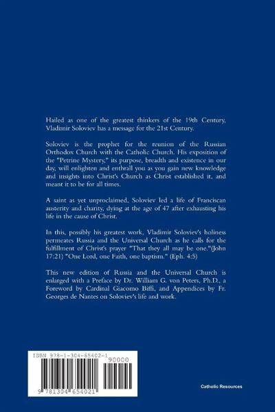 Vladimir Soloviev's master work on the Unity of the Faith, the Russian Orthodox Church as a part of the Universal Church, and the Petrine mystery of the One, Holy Catholic and Apostolic Church.