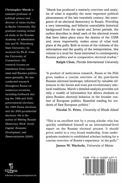 Vladmir Putin's recent election as Russia's president was the culmination of over a decade of competitive elections and attempts at democratic reform. In fact, voting in Russia has become the only legitimate means for gaining a position of political leadership in the government, or for the transfer of power from one set of leaders to another. This important development is traced from Russia's early electoral heritage to the present with examinations of executive, legislative, and local elections. Multiple tables and figures show electoral results and party support.