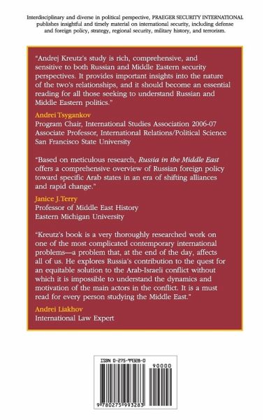 Kreutz examines the goals and strategies of Russia and the former Soviet Union toward most of the Arab states in the Middle East. The author argues that Russia has been an important actor in the region for over a century and has tried to regain its influence in several countries following its strategic retreat after the collapse of the Soviet Union in the early 1990s. However, according to Kreutz, Moscow does not seek confrontation with the United States or with the West in general in the region. Rather, the Russians are interested in peace and stability in the region, which is close to its borders. Because of that, although Moscow wants to cultivate its links with Israel, it also seeks to reach a peaceful and balanced solution to the Palestinian-Israel and the Arab-Israeli conflicts, taking Palestinian and Arab interests into account. Washington can better engage Moscow as a stabilizing force in the Middle East and as a collaborator in the struggle against Islamic terrorists. At the same time, the United States must be cognizant of where Washington and Moscow diverge. Although Russia may be too weak now to compete with the United States on a global scale, it is not happy to see American or EU encroachment close to its own neighborhood. If we take their weakness for granted and become blind to the possibilities for Russian alliances in the region, we do so to our disadvantage. This book demonstrates Russia's enduring interest and influence in the Arab Middle East.