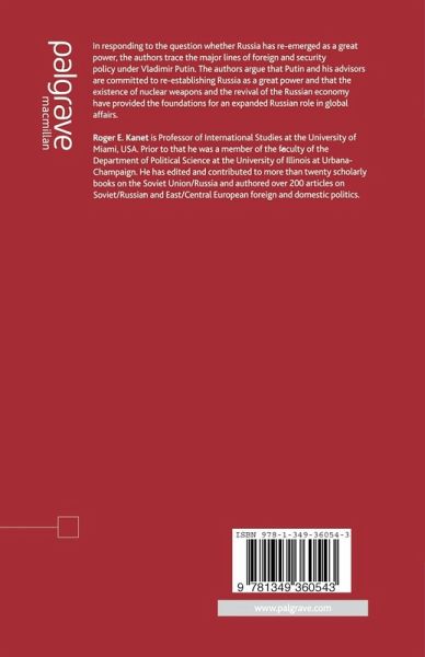 Introduction: The Consolidation of Russia's Role in World Affairs; R.E.Kanet PART I: RUSSIAN STRATEGY UNDER PUTIN Russia's Great Power Ambitions and Policy under Putin; I.Oldberg Forming a New Security Identity under Vladimir Putin; N.Lomagin Choices for Russia: Preserving Inherited Geopolitics through Emergent Global and European Realities; V.Rukavishnikov PART II: RUSSIA, THE CIS AND THE WORLD BEYOND Russia's Transnistria Policy: Means, Ends and Great Power Trajectories; G.P.Herd Putin's Attempts to Subjugate Georgia: From Sabre-Rattling to the Power of the Purse; B.Nygren Governance and Diplomacy as Attributes of a Great Power: Russia and the Three Enclaves Kaliningrad, Nagorno-Karabakh and Nakhchivan; S.Nies Russia and China in the New Central Asia: The Security Agenda; J.Berryman The U.S. Challenge to Russian Influence in Central Asia and the Caucasus; R.E.Kanet & L.Homarac Russia, Iran and the Nuclear Question: The Putin Record; R.O.Freedman Conclusion: Russia as a Re-emerging Great Power; R.E.Kanet