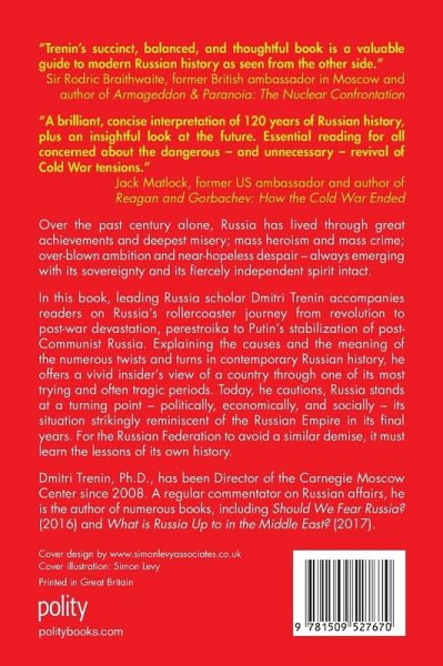 In this book, leading Russia scholar Dmitri Trenin accompanies readers on Russia's rollercoaster journey from revolution to post-war devastation, perestroika to Putin's stabilization of post-Communist Russia. Explaining the causes and the meaning of the numerous twists and turns in contemporary Russian history, he offers a vivid insider's view of a country through one of its most trying and often tragic periods. Today, he cautions, Russia stands at a turning point - politically, economically and socially - its situation strikingly reminiscent of the Russian Empire in its final years. For the Russian Federation to avoid a similar demise, it must learn the lessons of its own history.