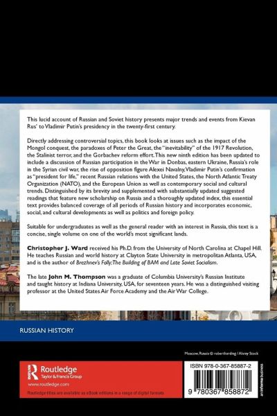 Directly addressing controversial topics, this book looks at issues such as the impact of the Mongol conquest, the paradoxes of Peter the Great, the "inevitability" of the 1917 Revolution, the Stalinist terror, and the Gorbachev reform effort. This new ninth edition has been updated to include a discussion of Russian participation in the War in Donbas, eastern Ukraine, Russia's role in the Syrian civil war, the rise of opposition figure Alexei Navalny, Vladimir Putin's confirmation as "president for life," recent Russian relations with the United States, the North Atlantic Treaty Organization (NATO), and the European Union as well as contemporary social and cultural trends. Distinguished by its brevity and supplemented with substantially updated suggested readings that feature new scholarship on Russia and a thoroughly updated index, this essential text provides balanced coverage of all periods of Russian history and incorporates economic, social, and cultural developments as well as politics and foreign policy.