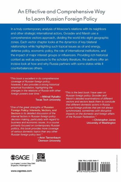In a truly contemporary analysis of Moscow's relations with its neighbours and other strategic international actors, Gvosdev and Marsh use a comprehensive vectors approach, dividing the world into eight geographic zones. Each vector chapter looks at the dynamics of key bilateral relationships while highlighting major topical issues - oil and energy, defence policy, economic policy, the role of international institutions, and the impact of major interest groups or influencers - demonstrating that Russia formulates multiple, sometimes contrasting, foreign policies. Providing rich historical context as well as exposure to the scholarly literature, the authors offer an incisive look at how and why Russia partners with some states while it counter-balances others.