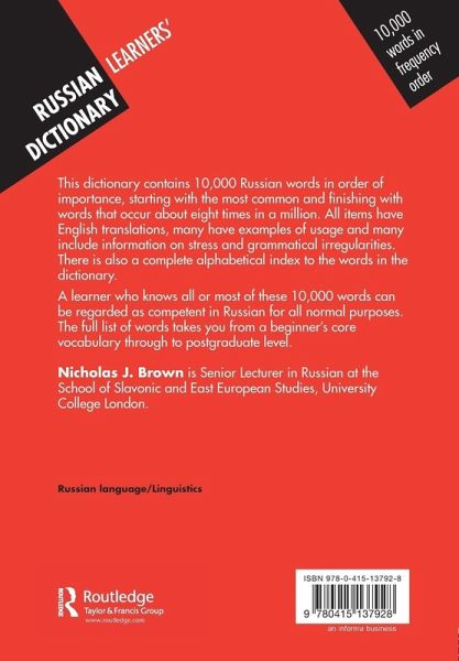 This dictionary contains 10,000 Russian words in order of importance starting with the most common and finishing with words that occur about 8 times in a million. All the terms have English translations.