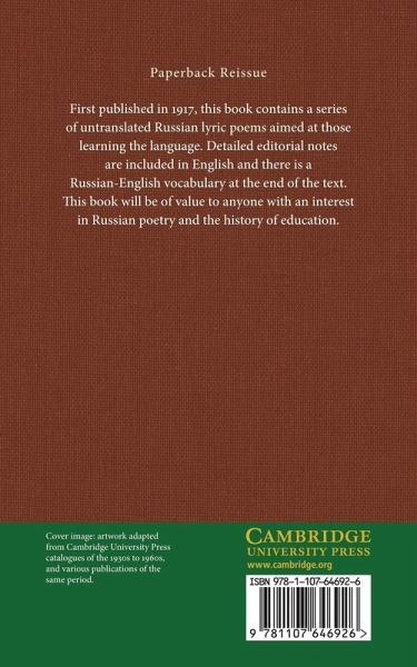 First published in 1917, this book contains a series of untranslated Russian lyric poems aimed at those learning the language. Detailed editorial notes are included in English and there is a Russian-English vocabulary at the end of the text. This book will be of value to anyone with an interest in Russian poetry and the history of education.