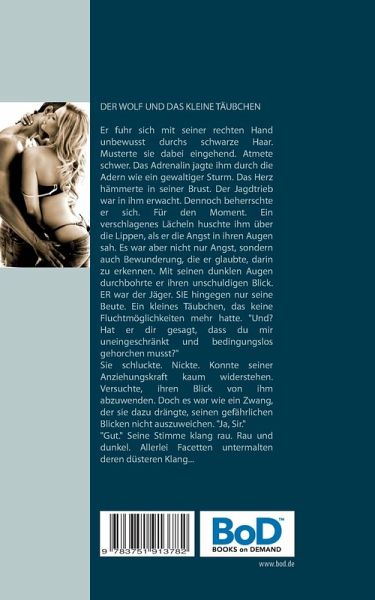 DER WOLF UND DAS KLEINE TÄUBCHENEr fuhr sich mit seiner rechten Hand unbewusst durchs schwarze Haar. Musterte sie dabei eingehend. Atmete schwer. Das Adrenalin jagte ihm durch die Adern wie ein gewaltiger Sturm. Das Herz hämmerte in seiner Brust. Der Jagdtrieb war in ihm erwacht. Dennoch beherrschte er sich. Für den Moment. Ein verschlagenes Lächeln huschte ihm über die Lippen, als er die Angst in ihren Augen sah. Es war aber nicht nur Angst, sondern auch Bewunderung, die er glaubte, darin zu erkennen. Mit seinen dunklen Augen durchbohrte er ihren unschuldigen Blick. ER war der Jäger. SIE hingegen nur seine Beute. Ein kleines Täubchen, das keine Fluchtmöglichkeiten mehr hatte. "Und? Hat er dir gesagt, dass du mir uneingeschränkt und bedingungslos gehorchen musst?"Sie schluckte. Nickte. Konnte seiner Anziehungskraft kaum widerstehen. Versuchte, ihren Blick von ihm abzuwenden. Doch es war wie ein Zwang, der sie dazu drängte, seinen gefährlichen Blicken nicht auszuweichen. "Ja, Sir.""Gut." Seine Stimme klang rau. Rau und dunkel. Allerlei Facetten untermalten deren düsteren Klang. Die Gefahr, die darin aber für das kleine Täubchen - eine wahre Unschuld - lauerte, war nicht zu überhören gewesen...[Auf dem Flug von Palermo nach Bogotá]