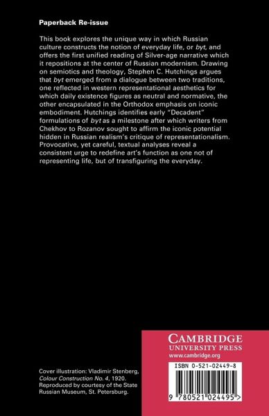 This book explores the unique way in which Russian culture constructs the notion of everyday life, or byt, and offers the first unified reading of Silver-age narrative which it repositions at the centre of Russian modernism. Drawing on semiotics and theology, Stephen C. Hutchings argues that byt emerged from a dialogue between two traditions, one reflected in western representational aesthetics for which daily existence figures as neutral and normative, the other encapsulated in the Orthodox emphasis on iconic embodiment. Hutchings identifies early 'Decadent' formulations of byt as a milestone after which writers from Chekhov to Rozanov sought to affirm the iconic potential hidden in Russian realism's critique of representationalism. Provocative, yet careful, textual analyses reveal a consistent urge to redefine art's function as one not of representing life, but of transfiguring the everyday.